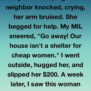 My eight-months-pregnant neighbor knocked on our door just after dusk, sobbing so hard she could barely speak. One arm was badly bruised, and she leaned against the frame as if…