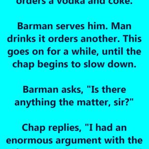 The Silent Treatment A man drinks at a bar after arguing with his wife. “She won’t speak to me for a month,” he sighs. The bartender says, “Go home and…