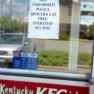 A KFC restaurant in Gallipolis, Ohio, recently sparked discussion after placing a sign on its front door honoring local police officers. The sign read: “All uniformed police officers eat free…