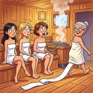 Four women were relaxing in a sauna, each wrapped modestly in a towel. Two were younger, one was middle-aged, and the last was a feisty senior citizen. Suddenly, a soft…