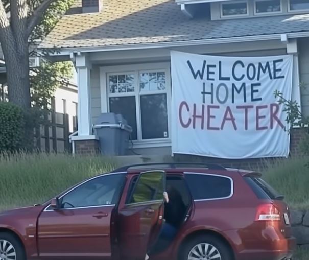 I thought I had the perfect marriage, until small clues—lipstick stains, perfume on Tim’s clothes—made me question what was really happening. I doubted myself, but then one day I stepped outside and saw a huge banner hanging across our porch with hurtful words aimed at my husband. Neighbors had surely seen it, and the humiliation cut deep.