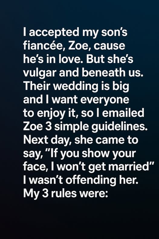 I accepted my son’s fiancée, Zoe, because he’s in love. But I had my reservations about her personality and manners. Their wedding was going to be a grand affair, and I wanted the day to feel harmonious for everyone involved. To keep things smooth, I emailed Zoe three simple guidelines I hoped would help us avoid misunderstandings during the event.