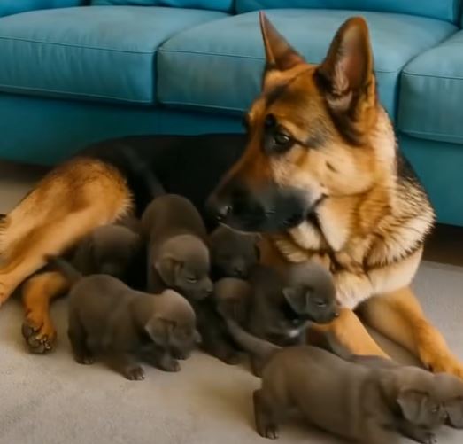 Inside the clinic, veterinarians worked quickly to examine the frightened animal — and then came the revelation that left everyone speechless. The dog wasn’t just malnourished and weak; she was also pregnant and about to give birth. The man, unable to walk away, stayed by her side through the night. Hours passed as he paced the hall, praying she would survive. And just before dawn, the silence broke — the first tiny cry echoed through the room, followed by several more. Against all odds, both mother and her newborns were alive and healthy.