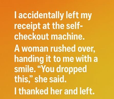 I didn’t notice the receipt at first. A woman with wind-reddened cheeks handed it to me at self-checkout, smiling shyly before we went our separate ways. Hours later, unpacking groceries at home, I found the note on the back: “Check your back seat.” My heart jumped. Every crime story I’d ever heard flashed through my mind. Still, curiosity won. I went outside, the night air cold and sharp, and opened my car door. There—half-hidden in the shadows—was my missing wallet.