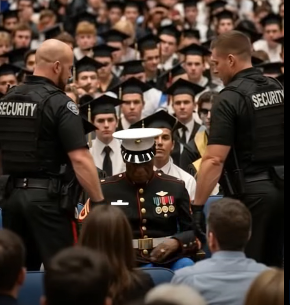 When security approached, assuming trouble where there was none, Solomon remained calm. He didn’t raise his voice or argue; discipline guided him like a compass. The crowd grew still, tension hanging like a pulled bowstring. But then a soft whisper rose—“He’s a Marine.” The truth passed through the rows like a warm breeze, turning suspicion into respect before a word more was spoken.