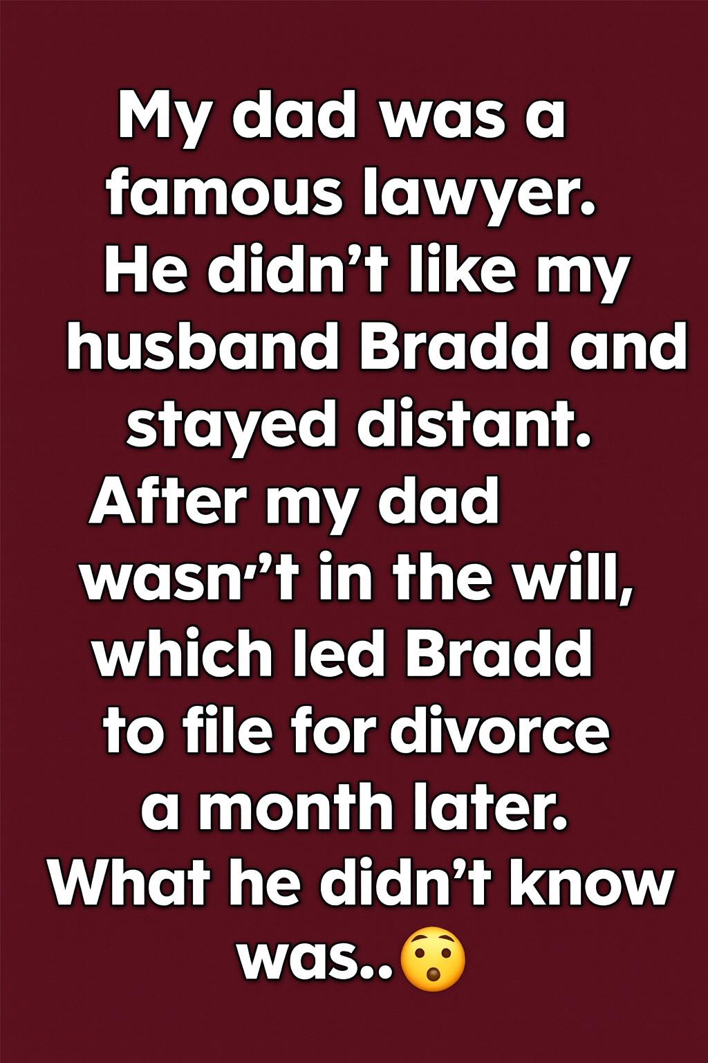 My dad was a famous lawyer, but he never liked my husband, Bradd. When Dad passed away, Bradd immediately asked how much money I was getting. When I told him I wasn’t in the will, he filed for divorce within a month. He didn’t know Dad had left me something — not money, but information. After the will reading, the executor handed me a plain envelope labeled: “For Norah. Not everything of value is currency.” Inside was a key and a letter telling me to visit Storage Unit 31 and ask for a man named Maynard.