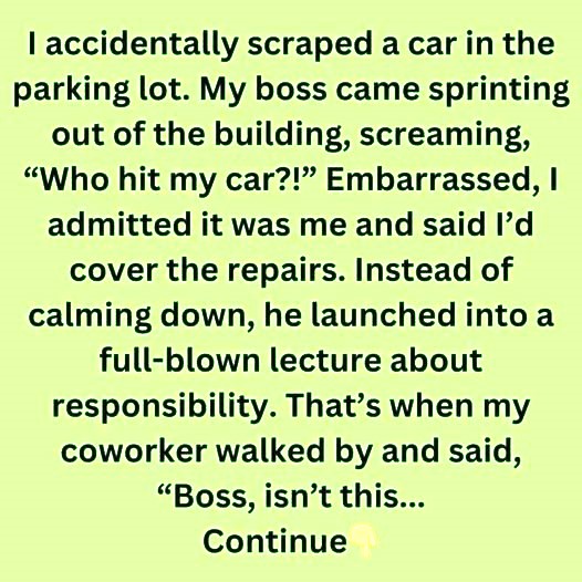 In a moment that felt like pure workplace karma, a minor car mishap forced a strict boss to experience the very same frustration he often imposed on his employees. The incident took place in the company parking lot, where the manager—known for criticizing staff over small mistakes and delays—found himself on the other side of the situation.