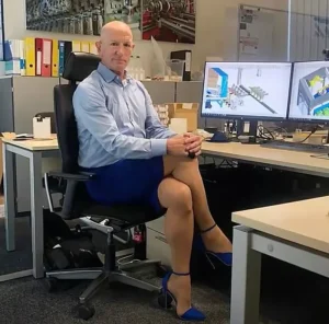 Mark Bryan, a 61-year-old married father of three, has spent the past several years challenging gender norms by wearing skirts and high heels to work. A robotics engineer manager living in Germany, Mark gained widespread attention on social media for his bold office outfits, amassing more than 73,000 followers.