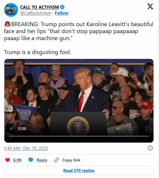 Donald Trump has faced criticism for recent remarks about Karoline Leavitt, his 28-year-old press secretary. Last month, he called journalist Catherine Lucey a “piggy” and also labeled another female reporter “nasty” and “stupid.” On December 9, Trump made comments about Leavitt’s appearance during a rally in Mount Pocono, Pennsylvania.