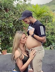 A Colombian transgender model has posted a touching photo of herself kissing the belly of her husband’s eight-month-old baby. Danna Sultana, who was born male but identifies as female, is expecting a child with Esteban Landrau, who was born female but identifies as male. In one sweet video posted to the model’s social media account, Danna can be seen kissing and caressing Esteban’s bulging belly as he smiles for the camera.conceived naturally, as both Danna and Esteban still have natural organs, local media reported.