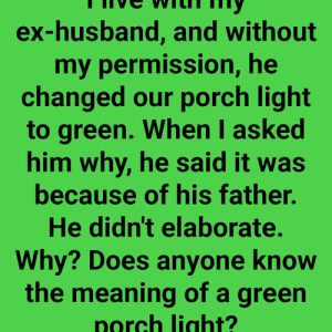 My name is Meridith, and I live with my ex-husband, Darion. Though we divorced two years ago, financial reasons kept us under the same roof—roommates, not partners. One night, I noticed our porch light had been changed to green. When I asked why, Darion simply said, “It’s for my father.” He offered no more. A friend later explained: a green porch light is often a tribute to veterans, especially those facing PTSD or lost to suicide.