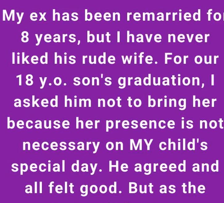 My ex has been remarried for 8 years, but I’ve never liked his wife.She’s always beenold,condescending — the kind of person who walks into a room and makes it colder just by being there. And no matter how much time passed, I couldn’t bring myself to accept her, especially not around my son.When our 18-year-old’s graduation came up — a moment I’d waited for his entire life — I made one request:Please don’t bring her.