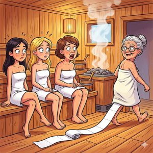 Four women were relaxing in a sauna, each wrapped modestly in a towel. Two were younger, one was middle-aged, and the last was a feisty senior citizen. Suddenly, a soft…