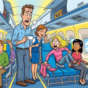 Mr. Johnson boarded his flight, only to find a blonde woman sitting in his aisle seat. Trying to stay calm, he said, “Excuse me, that’s my seat. I booked it.”…
