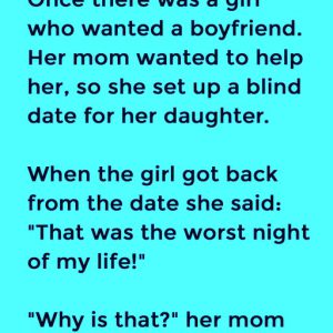 A young woman wanted a boyfriend, so her mother arranged a blind date. When she returned home, she sighed, “That was the worst night of my life.” “Why?” her mom…